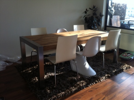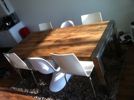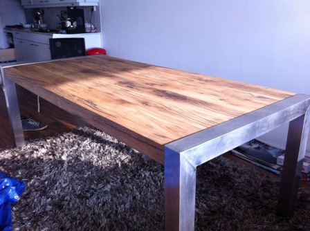 Het RVS frame is gemaakt uit koker 80x80mm wat ook de dikte van de zijde van de tafel is.