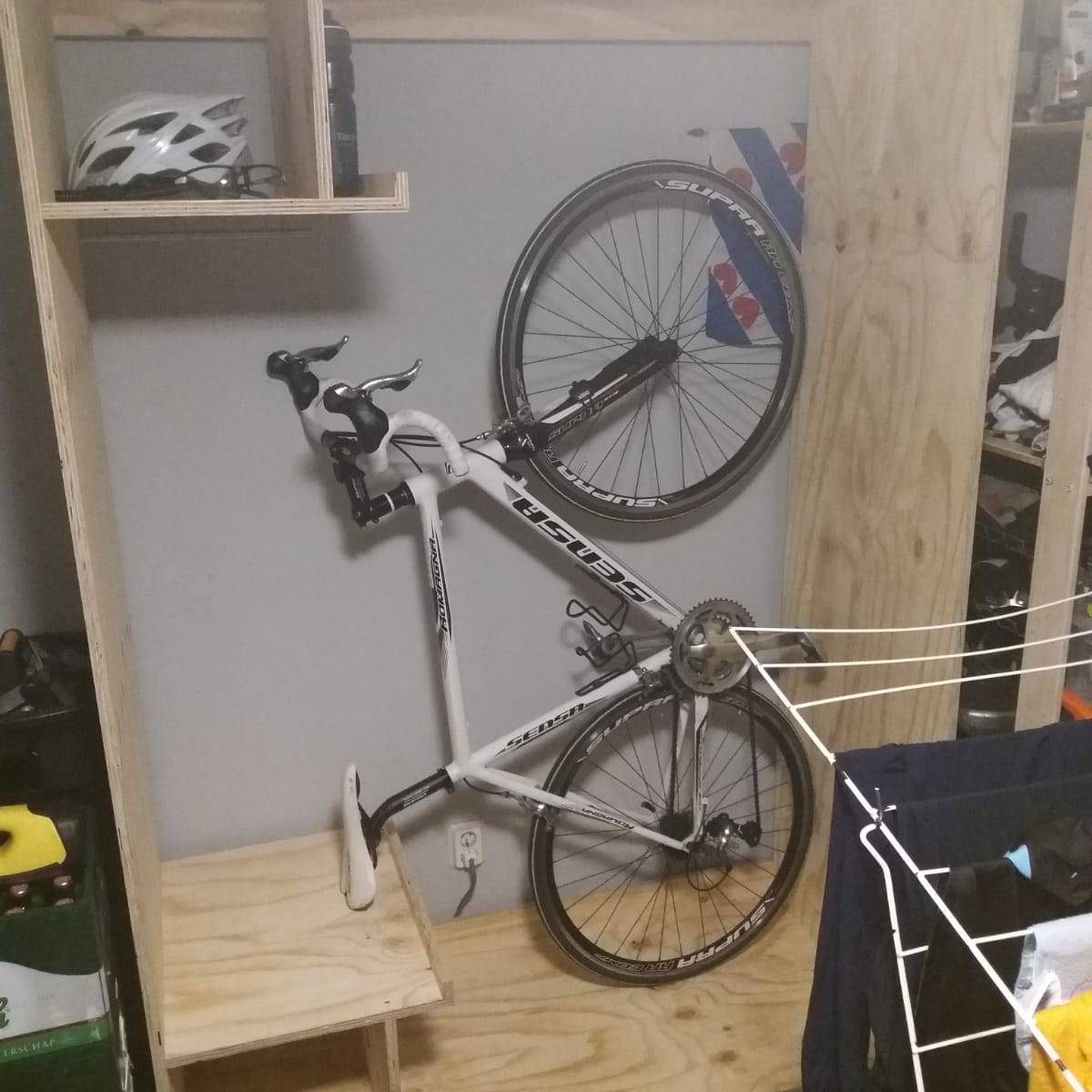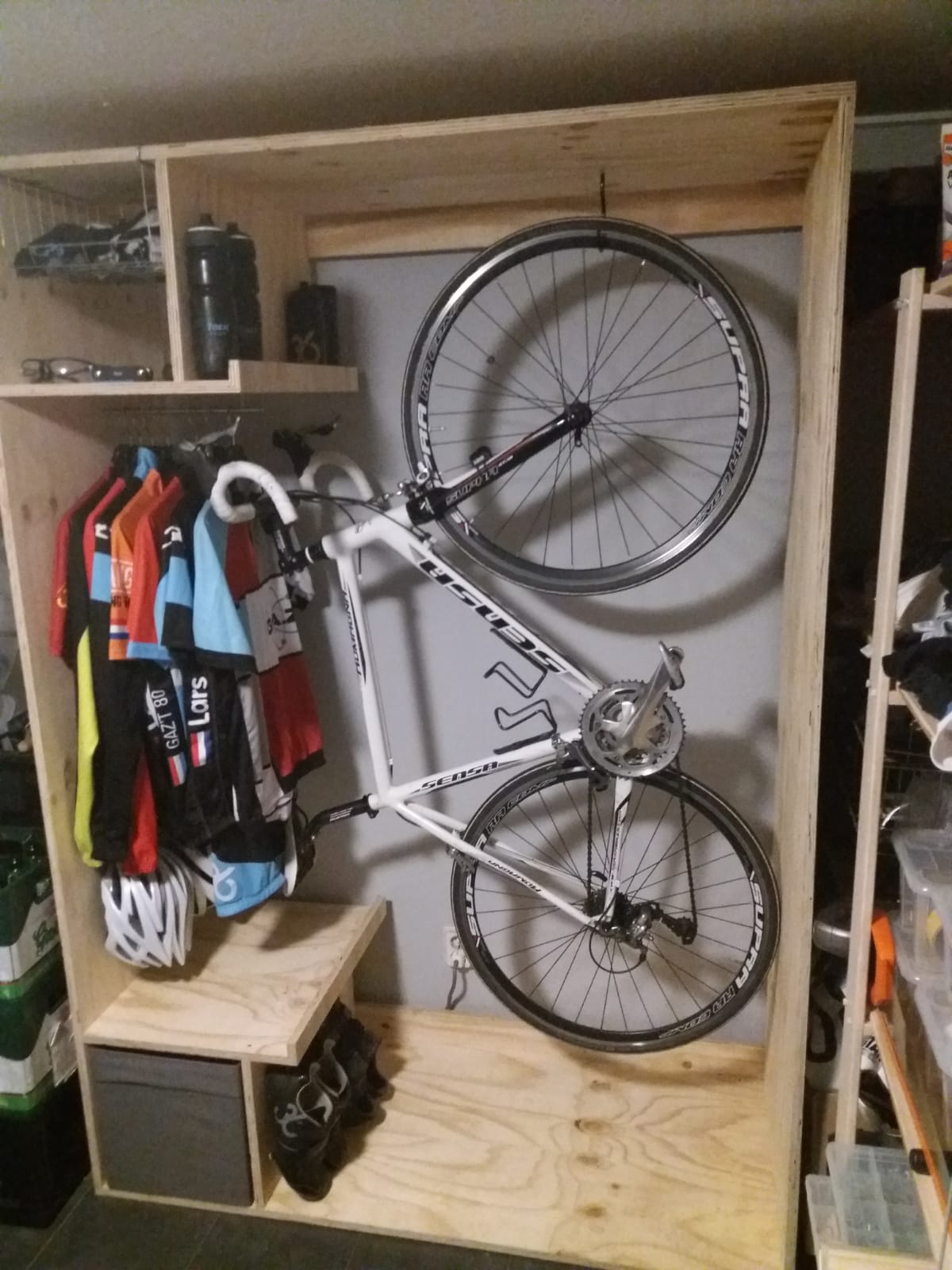 Wielerkast In opdracht deze underlayment kast gemaakt om een wielerfiets en de bijbehorende kleding en materialen in op te slaan.